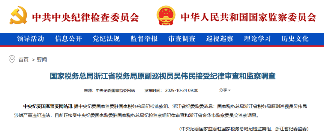 (中央纪委国家监委驻国家税务总局纪检监察组、浙江省纪委监委)