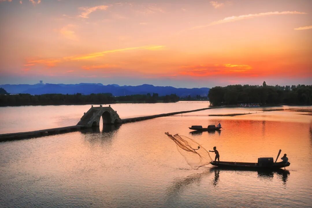 夕阳把河水染成金红色的时候,乌篷船的橹声、躅桨声还在荡。黑亮的篷布映着晚霞,像给这座“移动博物馆”盖了层温柔的盖头。它不是陈列在玻璃柜里的文物,是能摸得到的、能坐上去的、能听见声音的“活历史”。