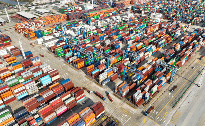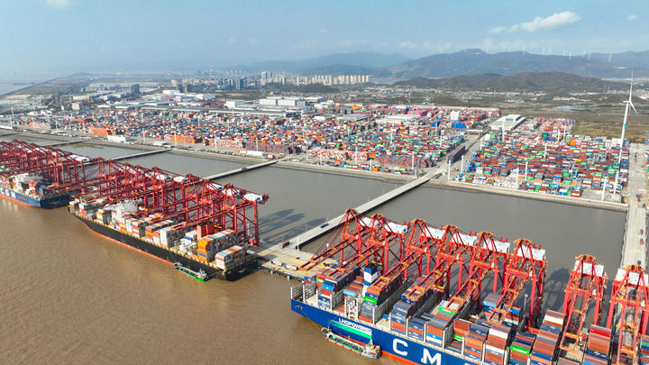 2025年12月4日拍摄的宁波舟山港穿山港区集装箱码头(无人机照片)。新华社发(汤健凯摄)