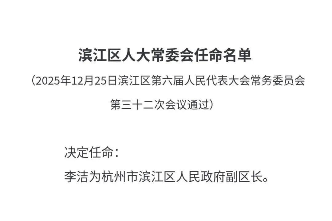 李洁任杭州市滨江区副区长、代理区长