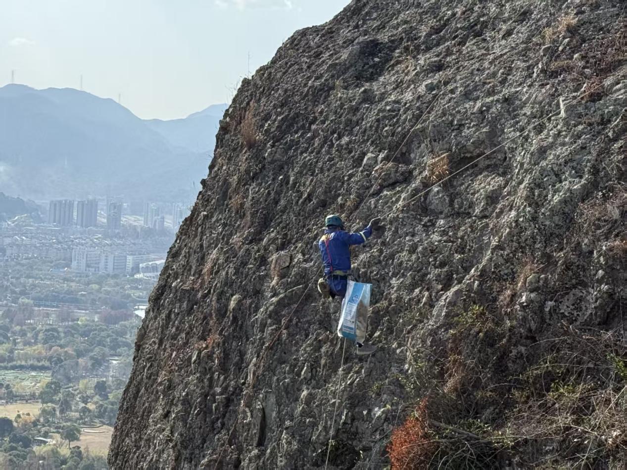 温岭蓝天救援队队员大多是喜欢运动的驴友,攀岩是他们经常训练的项目。2015年3月的一天,蓝天救援队在石夫人景区进行悬崖攀岩训练时,意外发现整个石夫人景区悬崖下垃圾遍布。原本的训练活动随即变成了一次大规模的垃圾清理行动,自此,悬崖垃圾清理成了救援队的常态化公益项目。景区悬崖落差少则几十米,多则百余米。“刚好我们有300余名队员,大多是资深驴友,有丰富的攀岩经验,且都热心公益,所以我们启动了悬崖垃圾清理公益项目,十年来,平均每月组织1-2次悬崖垃圾清理行动,以维持高山景区环境整洁。”温岭蓝天救援队秘书长王青苗说。(张鲜红/文 温岭市太平街道办事处/供图)