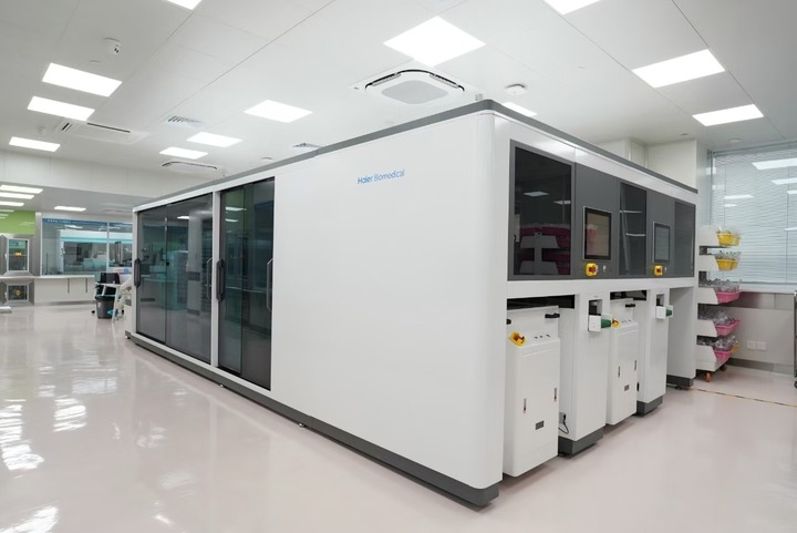 依托海尔大健康医工科技创新产业化平台,打造的国内首个智能贴签摆药一体机。(受访者供图)