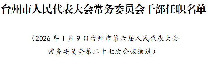 邵宣豪为台州市人大常委会法制工作委员会主任;